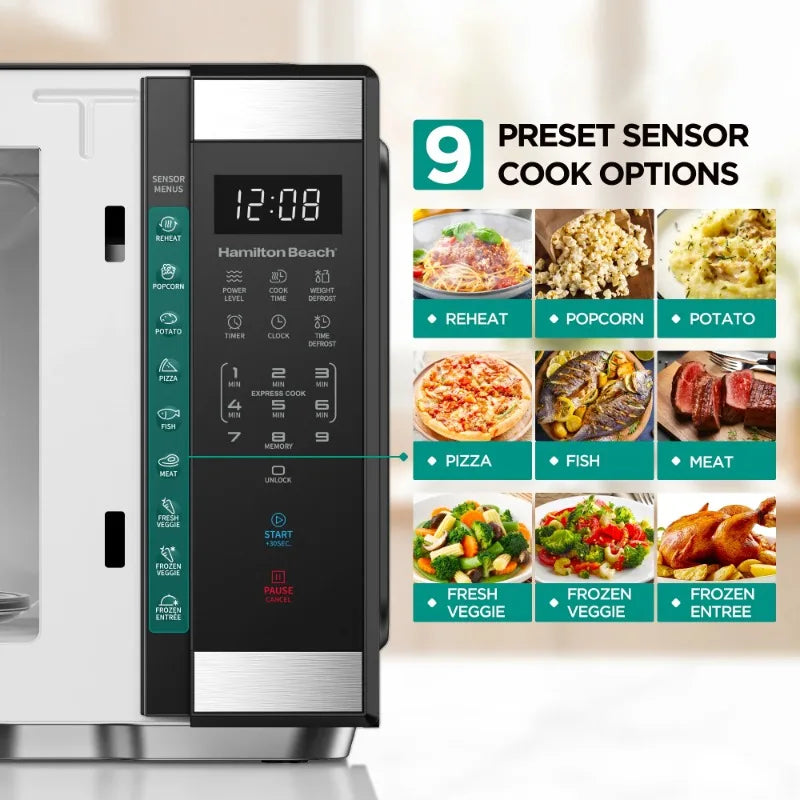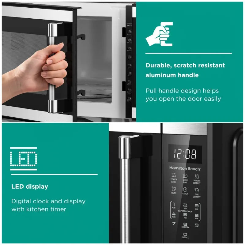 Upgrade your kitchen with the sleek and powerful Hamilton Beach 1.1 Cu. Ft. Countertop Microwave Oven in Stainless Steel (Model: HB8436193153-01). Designed to complement your modern style, this 1000-watt microwave offers 10 adjustable power levels for perfect cooking and reheating results. Featuring an intuitive touchpad and easy-to-read LED display, this microwave puts convenience at your fingertips. With one-touch options for popular foods like potatoes, popcorn, frozen dinners, pizza, and beverages, meal prep is quicker than ever. Enjoy even heating for consistent results your family will love. A new child safety lock adds peace of mind, keeping young hands safe.